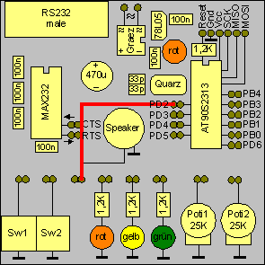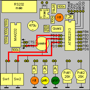 Im letzten Teil hatten wir anhand der UART die Arbeit mit Interrupts besprochen. Die Interrupts werden wir auch weiterhin benötigen. Der Schwerpunkt liegt jetzt aber darauf, weitere Peripheriebausteine des AT90S2313 vorzustellen.Externe Interrupts
