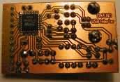 So sieht der USB-Adapter aus - die Fotos geben ziemlich genau die tatsächliche Größe wieder. Die Platine ist einlagig und der USB-Controller wird auf die Kupferseite gelötet. Zum Anschließen des AVR-Experimentierboards wird wie auf diesem eine SIL-Buchsenleiste verwendet und die Verbindungen werden mit starrem Schaltdraht hergestellt. Bitte nicht vergessen, daß die Leitungen RxD und TxD bei der Verbindung mit dem AVR gekreuzt werden müssen. |